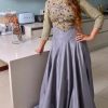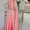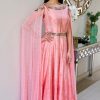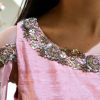 Raw silk dress with pure georgette long hanging sleeves with zari & sequence handwork on the neckline & waist.